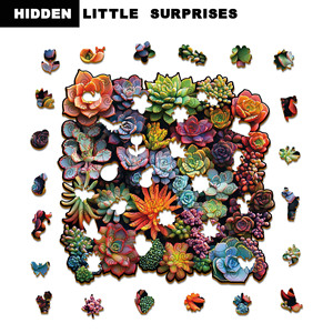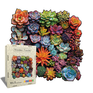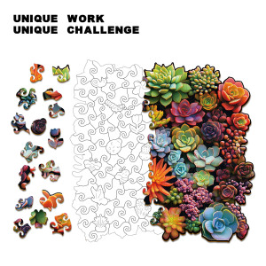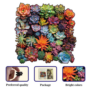 跨境木质多肉植物拼图玩具不规则异形拼图节日礼物谜题解压游戏