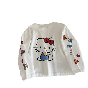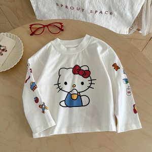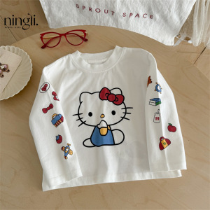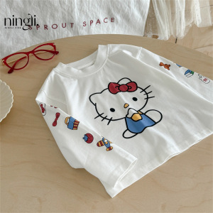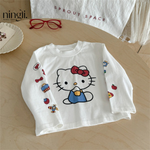 柠里女童秋装卡通长袖T恤女宝宝春秋Kitty猫打底衫儿童上衣童装t