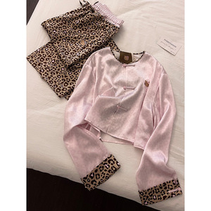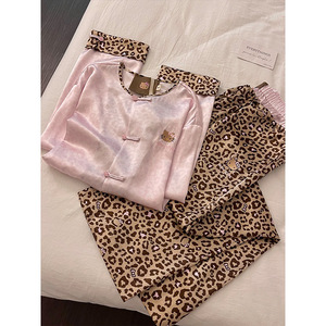 新中式国风高级感豹纹圆领长袖睡衣女秋季爆款2025新款家居服套装