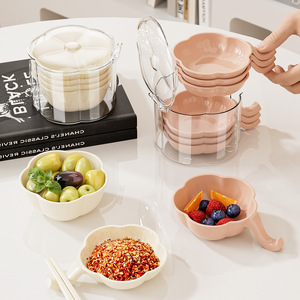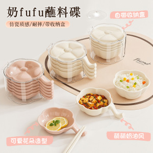 蘸料碟高颜值塑料小碟子可爱花朵酱油醋骨碟调料味蘸酱碟带收纳盒