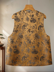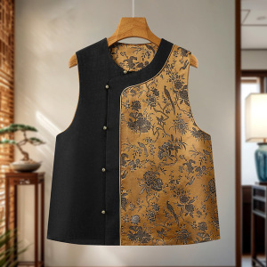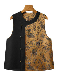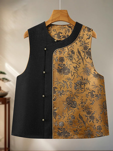 批发一件代发新中式拼色圆领珠扣斜襟坎肩唐装无袖外套马夹高级感