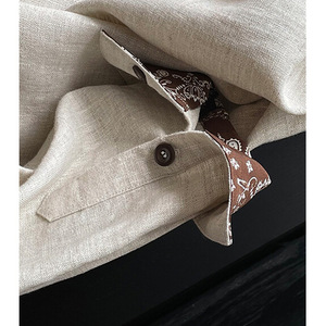 2025早秋新款翻领长袖纯色衬衫女复古气质通勤亚麻松弛感显瘦衬衣
