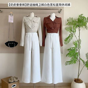 早安樊樊奶皮垂垂裤舒适抽绳卫裤白色裤子宽松直筒长裤休闲裤