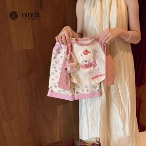 柠里女童卡通T恤套装新款秋季女孩插肩袖上衣卡通印花裤子两件套