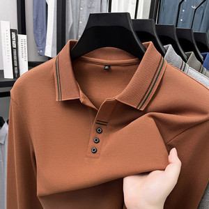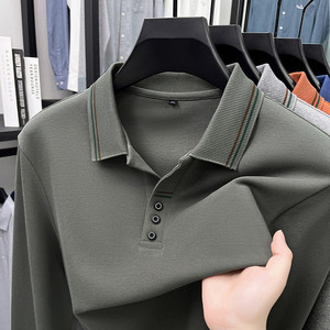 纯棉100%丝光长绒棉珠地翻领长袖t恤男2025秋季高品质男士polo衫