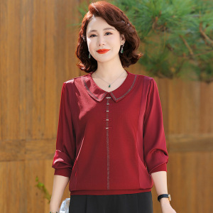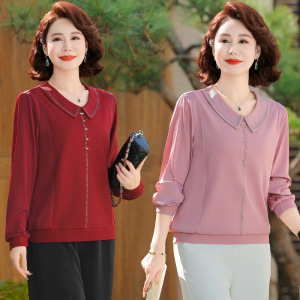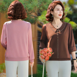 春装小衫女洋气长袖t恤中老年妈妈夏装时尚高贵小衫上衣宽松气质