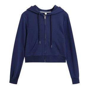 时尚休闲拉链薄款外套秋冬宽松韩版潮连帽短款长袖开衫卫衣女显瘦