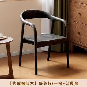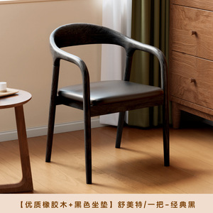 新中式实木餐椅家用靠背椅胡桃舒美特椅简约扶手椅子复古书桌北欧