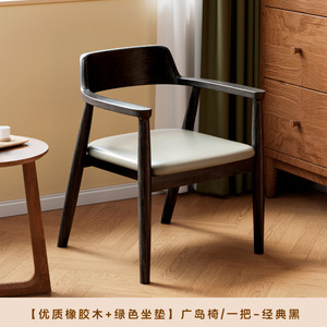 【广岛椅】胡桃色+黑色软包【整装发货/无需安装】