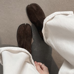 YYDS~2025秋冬新款真皮分趾靴法式复古猪蹄靴子时尚低跟短靴女