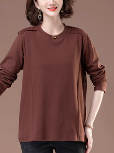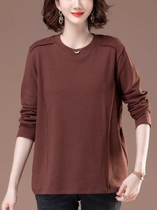 洋气中老年妈妈春秋磨毛T恤女长袖宽松加肥加大码正肩纯棉打底衫