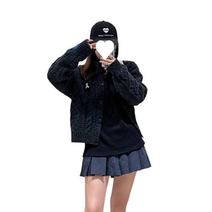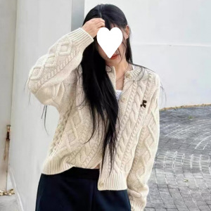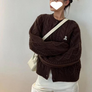 韩系麻花加厚毛衣外套女韩版春秋新款宽松百搭显瘦圆领针织开衫