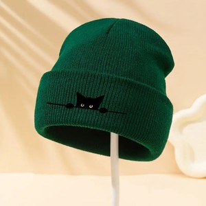 新款秋冬保暖冷帽卡通黑猫印花毛线帽男女休闲情侣针织帽子