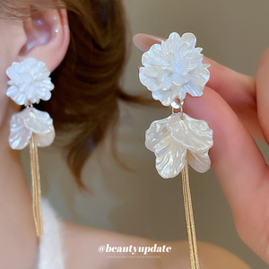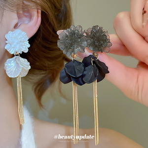银针亚克力花朵花瓣流苏耳环时尚超仙甜美气质耳钉轻奢高级感耳饰
