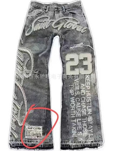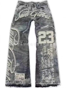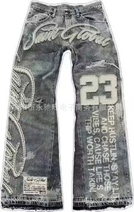 日系美式外贸新款夏季磨白刺绣牛仔裤子潮流宽松休闲高街长裤中性