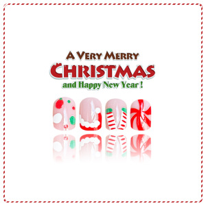 新款圣诞款美甲片假指甲批发圣诞帽子糖果短款小方假指甲跨境