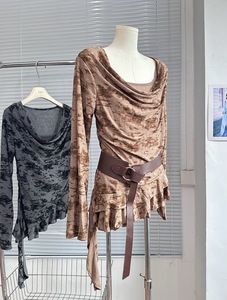 别致设计感晕染休闲荷叶边上衣女秋季新款减龄百搭气质T恤