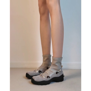 澜柜版~小众复古厚底圆头瘦瘦靴女时尚运动风软皮短靴马丁靴袜靴