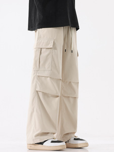 美式高街宽松阔腿红色工装裤男女多口袋伞兵潮牌复古百搭休闲长裤