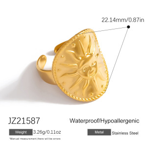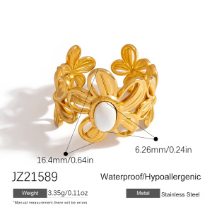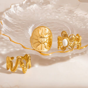 跨境不锈钢手饰花朵镶嵌天然石戒指饰品电镀18K金不规则Ring