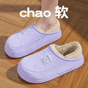 防水棉鞋女士包跟厚底外穿柔软毛绒居家室内保暖棉拖鞋男冬天批发