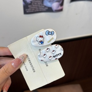 可爱甜美奶白KT猫雨滴发夹卡通少女ins风百搭椭圆刘海夹网红发卡