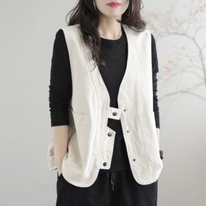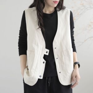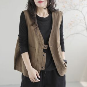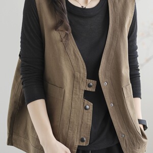 休闲出口日本欧美复古工装马甲女宽松显瘦背心领坎肩短外套