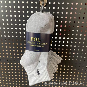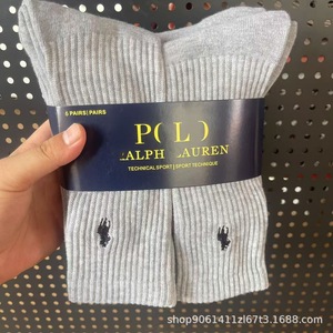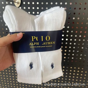 保罗拉夫外贸男士刺绣小马袜子毛巾底黑白灰经典运动白色跨境袜子