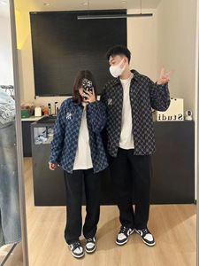 MLB韩国高版老花牛仔男女衬衫时尚宽松休闲情侣秋冬新款外套百搭
