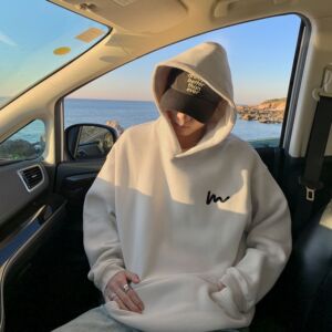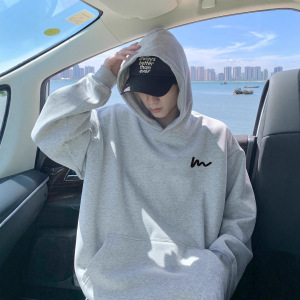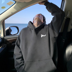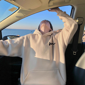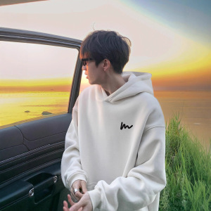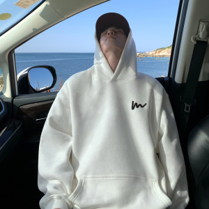 藏青色重磅连帽加绒卫衣男款春秋冬季美式潮牌宽松休闲男生上衣服