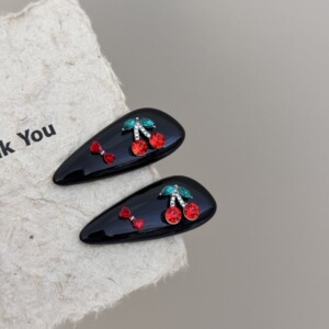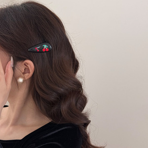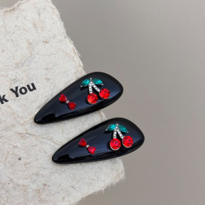 小众设计高级感撞色复古暗黑安可拉红樱桃水钻蝴蝶结发夹气质边夹