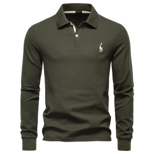 高polo男2025年翻领上衣翻领品质休闲百搭纯色POLO衫长袖秋季男式