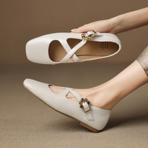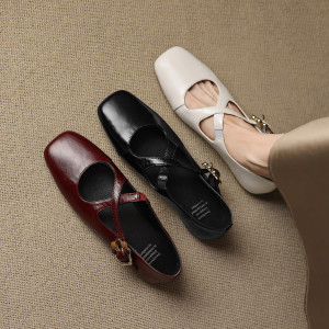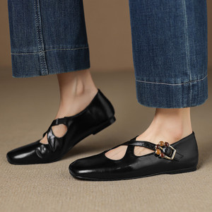 平底单鞋女2025新款法式不累脚复古舒适方头交叉扣带玛丽珍小皮鞋
