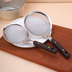 25年新款漏勺家用厨房隔热防烫不锈钢方尾木纹过滤网筛漏网勺