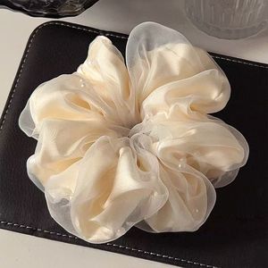 大号珍珠欧根纱大肠发圈简约头绳2025新款高端头花头饰发饰头圈女