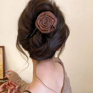 跨境爆款高级感玫瑰珍珠扭扭夹女后脑勺抓夹新款气质发夹发抓头饰