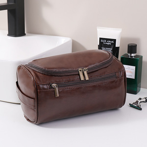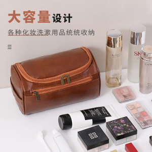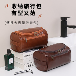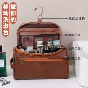 跨境手提挂钩洗漱包大容量防水收纳旅行PU皮洗漱包多功能洗漱包