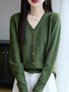 轻奢针织开衫女气质高级感纽扣毛衣外套早秋V领叠穿长袖百搭上衣