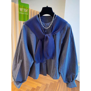 韩系格子衬衫女长袖披肩两件套上衣2025新款秋季宽松氛围感穿搭