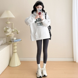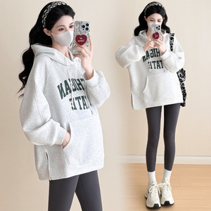 孕妇秋冬时尚新款简约宽松字母连帽卫衣韩版宽松休闲孕妇套头上衣