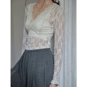 贰羊设计【花未央】国风新中式v领蕾丝打底衫纯欲内搭长袖上衣女