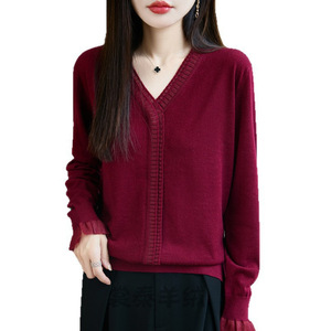 新款柔软v领针织衫女软糯气质毛衣时尚百搭上衣洋气显瘦V领打底衫