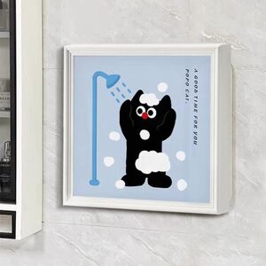 可爱猫咪浴室收纳置物架洗澡放衣服卫生间洗手间壁画折叠柜子