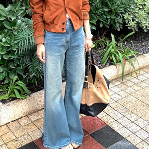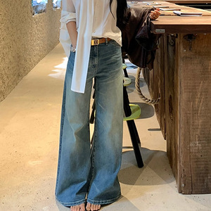 EAR R 梨形天菜弹力 显瘦舒适 复古水洗蓝宽松直筒百搭牛仔裤女