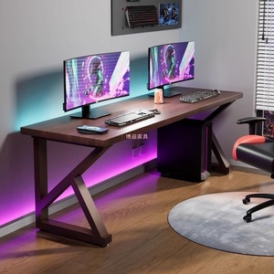双人实木电脑桌台式家用电竞桌简约卧室大板书桌工作台拼排长条桌