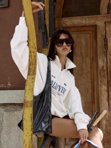 美式运动风半开领休闲印花卫衣女装宽松舒适日常通勤时尚潮流百搭