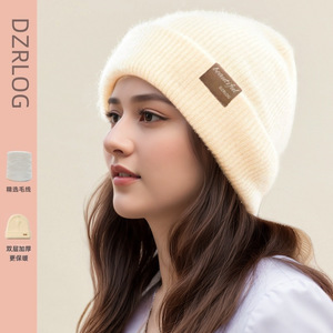 冬季时尚百搭包头冷帽女加绒加厚保暖套头帽防寒防风针织毛线帽子