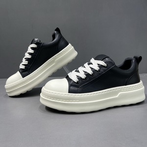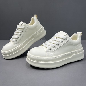 2025新款圆头厚底真皮小白鞋男士潮流百搭休闲板鞋低帮运动板鞋男