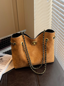 复古磨砂大容量包包女2025秋冬季新款麂皮绒单肩包通勤托特水桶包