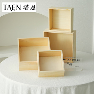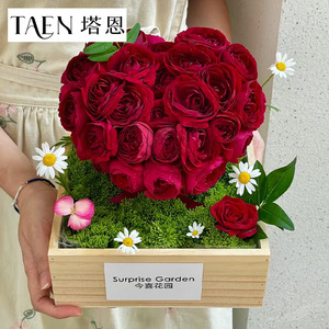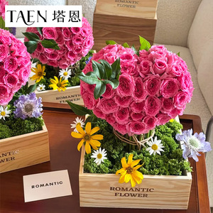 塔恩 简约方形木盒玫瑰花束插花盒diy手工花艺礼盒鲜花包装材料
